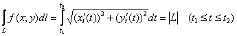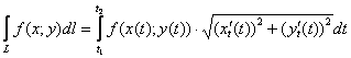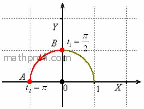 3.1.2. Если линия задана параметрическиДовольно часто линия В частности, при Пример 55 Вычислить криволинейный интеграл Решение: указанным пределам изменения параметра соответствует левая верхняя дуга единичной